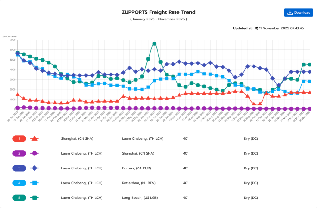 อัปเดตโลจิสติกส์ Freight ระหว่างประเทศ (4– 10 Nov 2025)